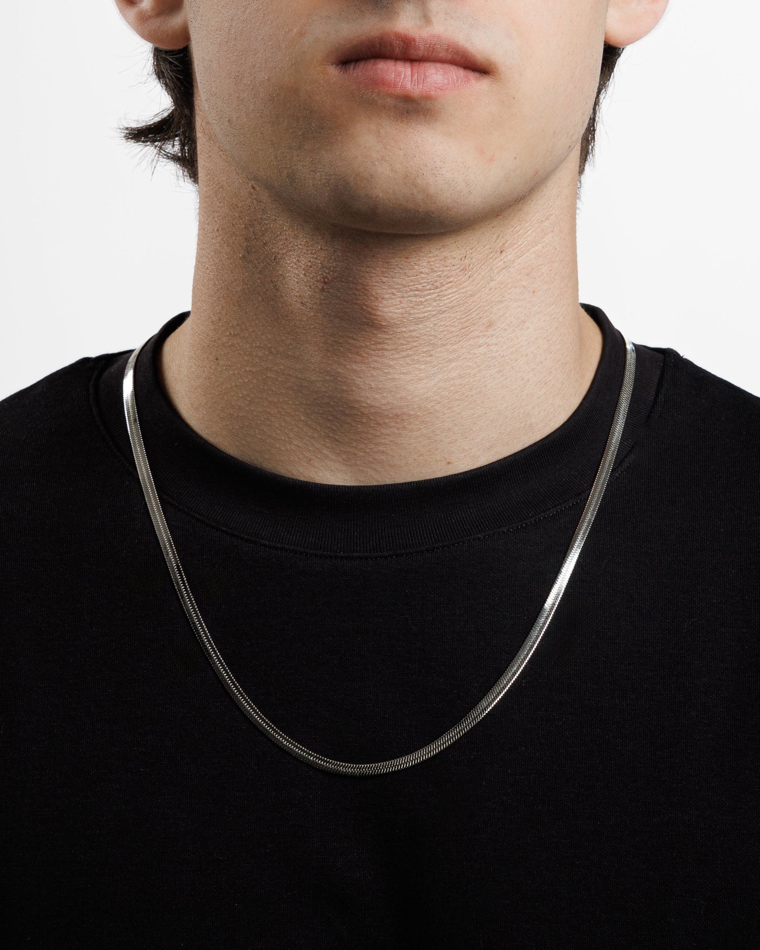 Die Snake Chain überzeugt mit ihrer glatten, schuppenähnlichen Struktur und liegt perfekt auf der Haut. Dezent im Look, stark im Detail – für alle, die Wert auf Understatement mit Charakter legen.